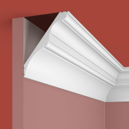 Карниз К09720-1 придаст выразительный завершённый вид большому по площади помещению. Материал изделия - экополимер абсолютно безопасен для человека и животных.